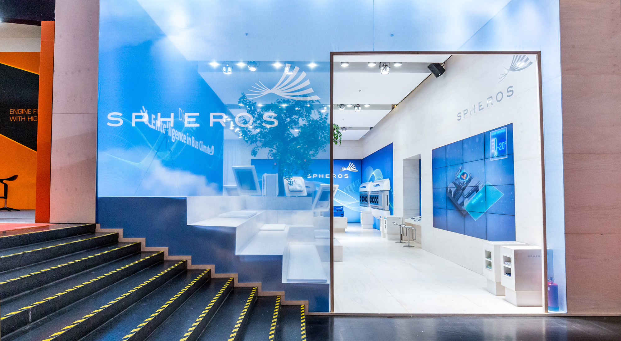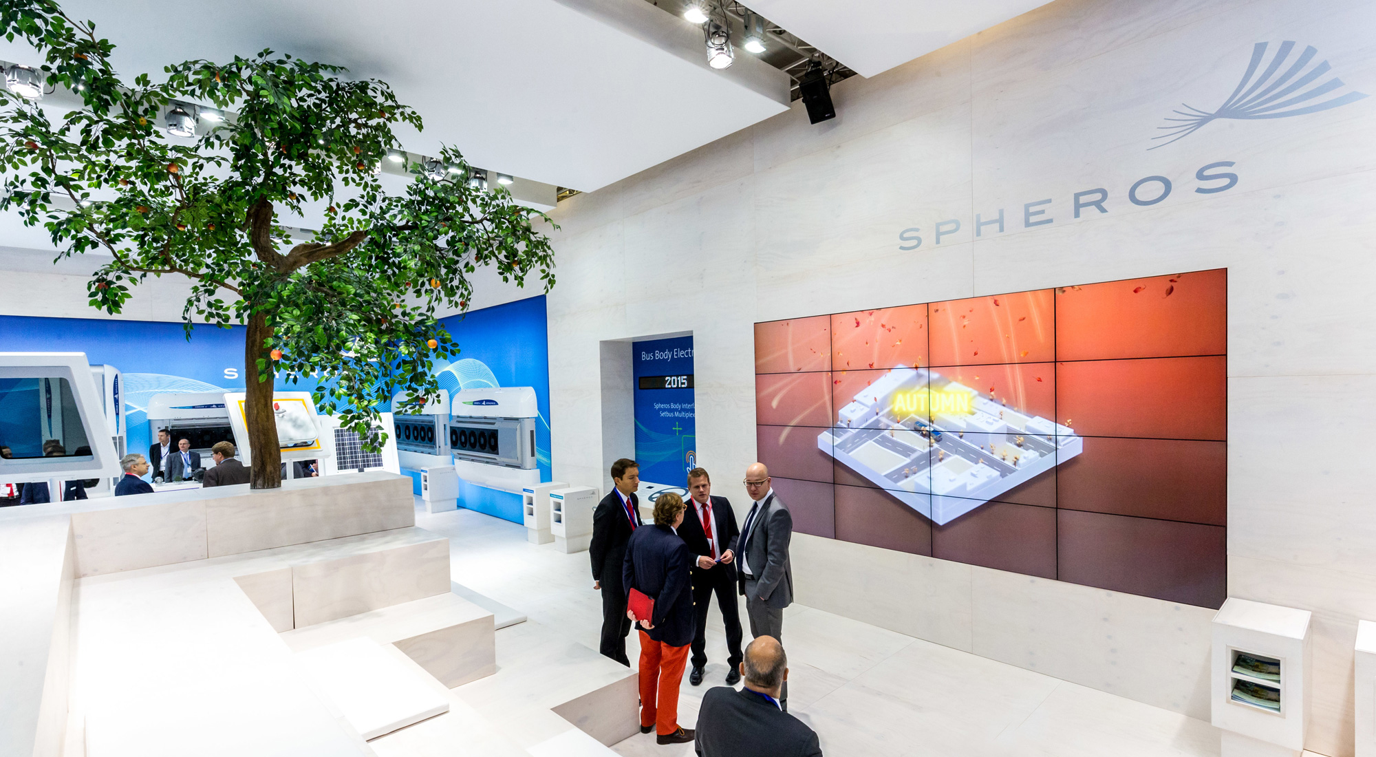 Herstellung des Messestands für SPHEROS auf der Busworld in Kortrijk, Belgien in Zusammenarbeit mit Harre Interiors, Berlin.