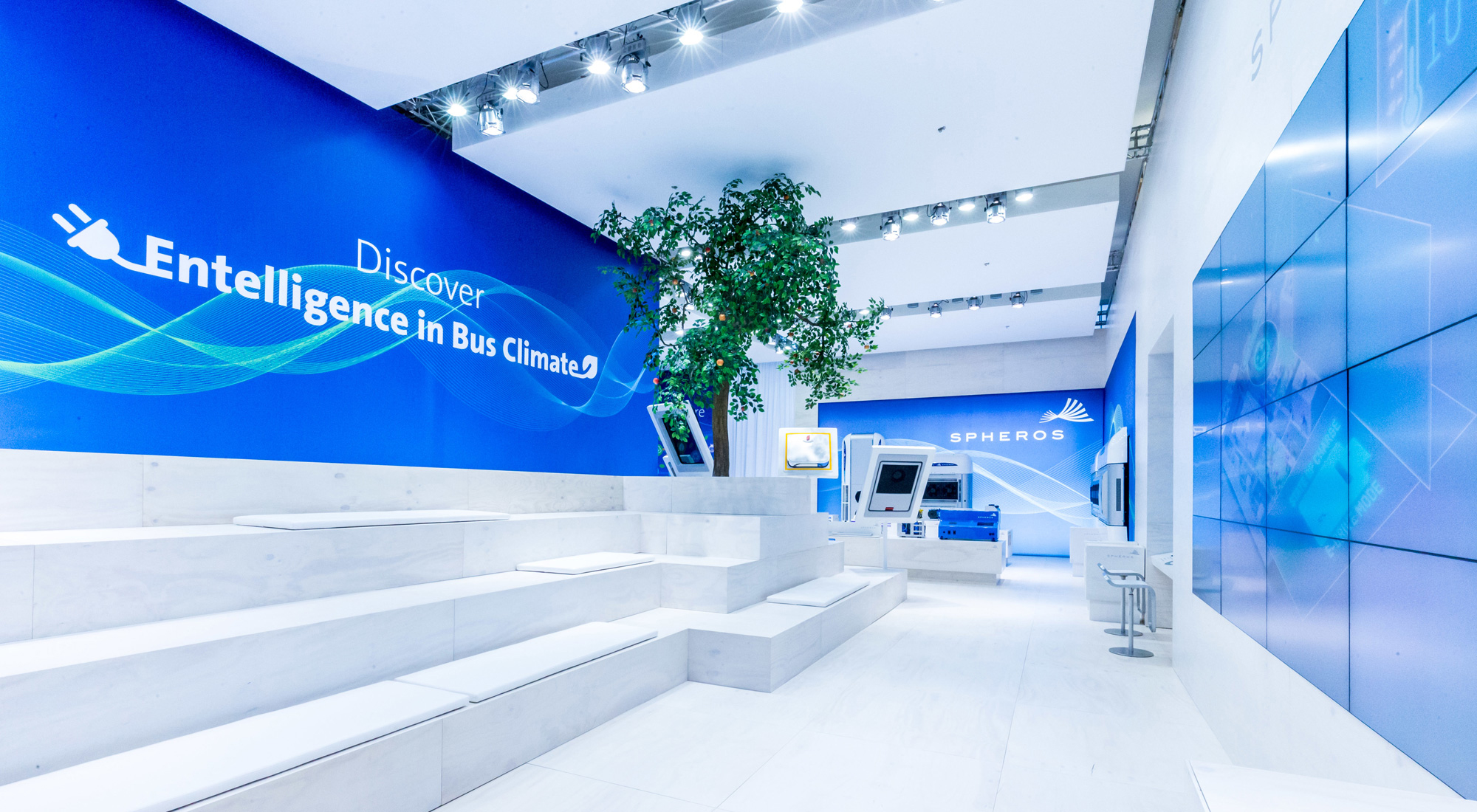 Herstellung des Messestands für SPHEROS auf der Busworld in Kortrijk, Belgien in Zusammenarbeit mit Harre Interiors, Berlin.